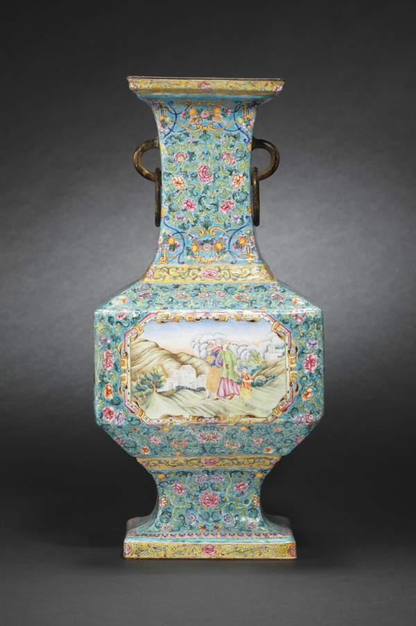 - An Imperial enameled “European subject” vase, Qianlong seal mark and of the period