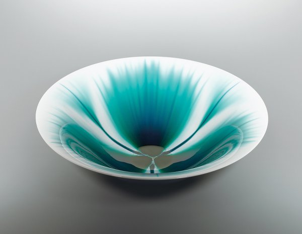 - Tokuda Yasokichi IV, Suicho, 2013, porcelain with vivid colored glaze, 6 x 21 inches.