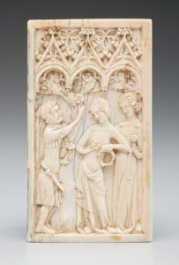 Cover for a Writing Tablet with a Romance Subject, attributed to the Atelier of the Boxes, France, 1340–1360, ivory, 3 1⁄4 x 1 7⁄8 in.